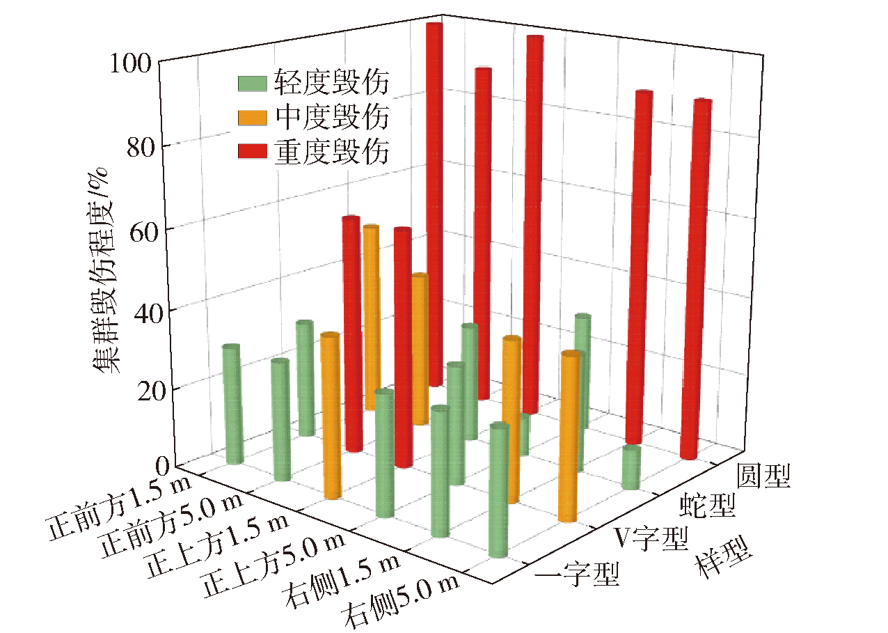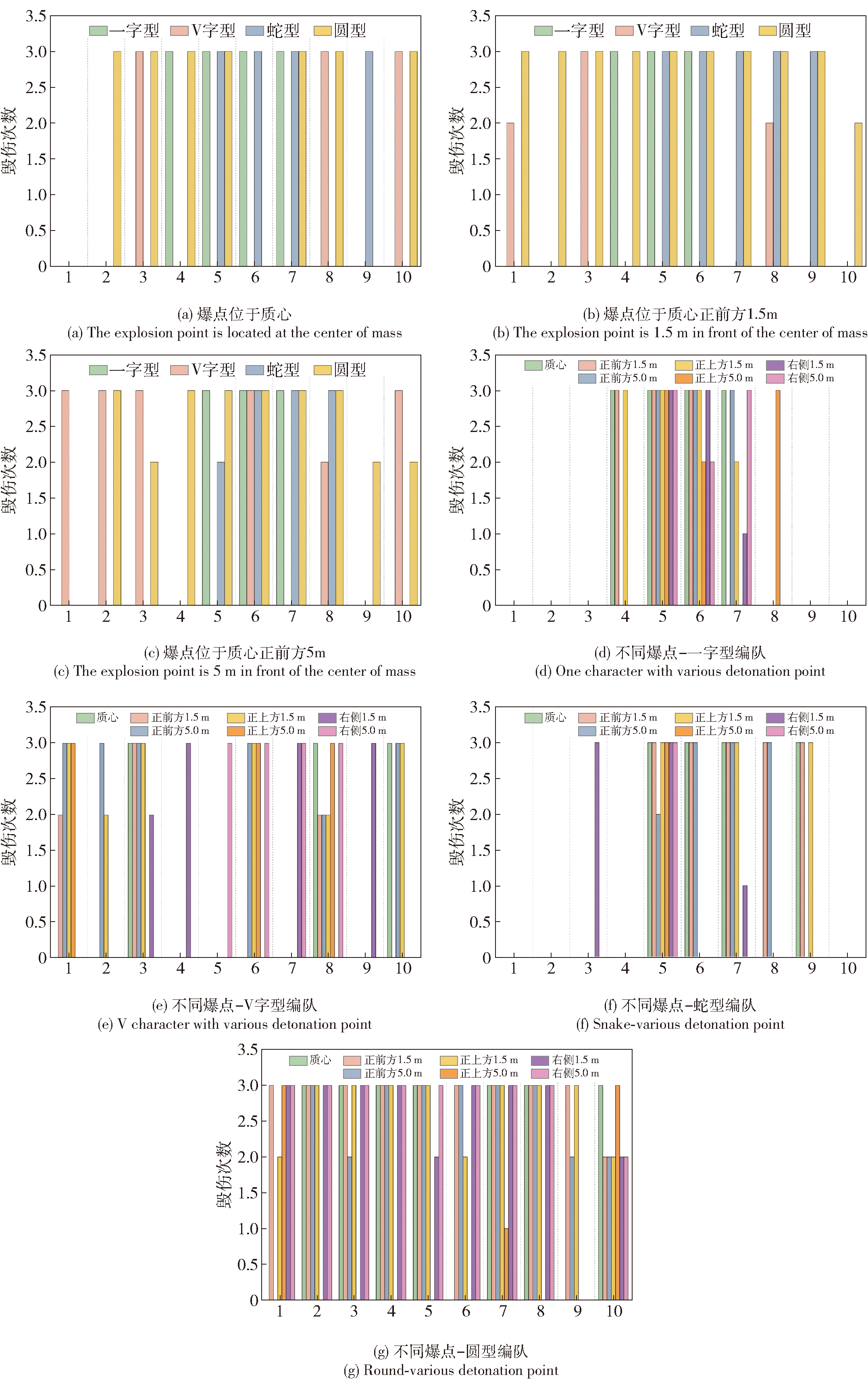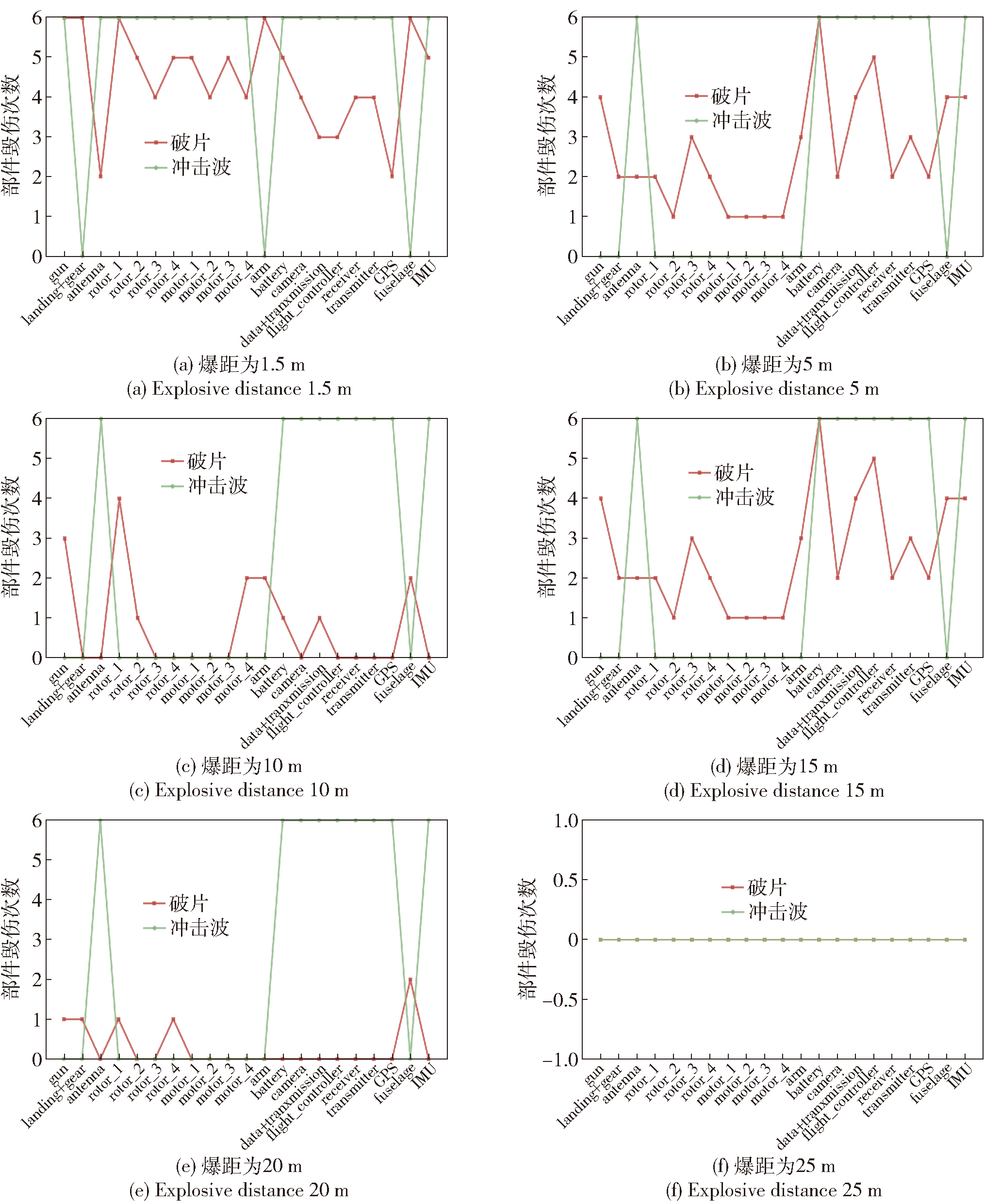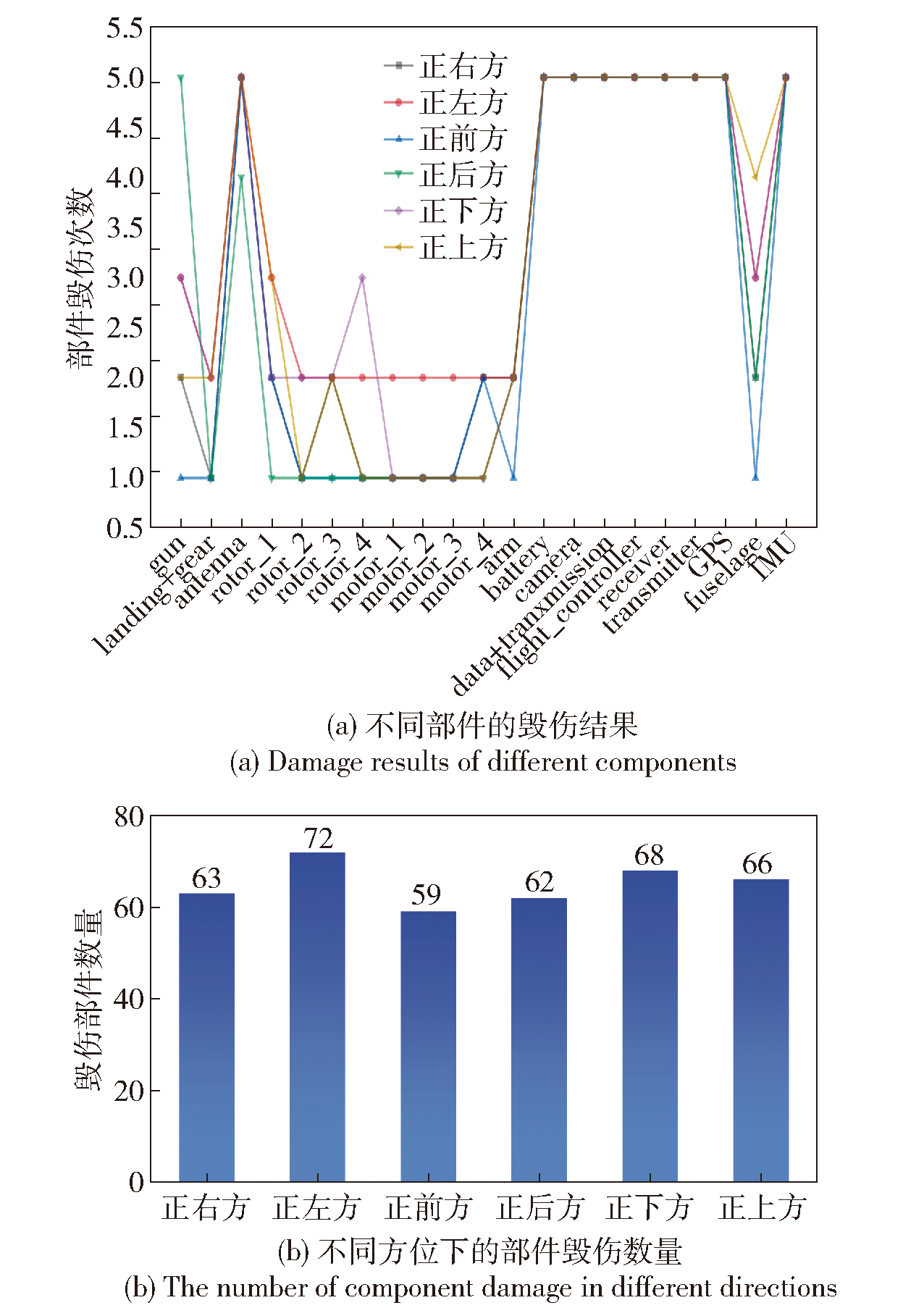 摘要: 针对无人机集群毁伤评估中存在的部件级毁伤机理不明确、编队构型影响机制不完善等问题,提出了一种融合高精度部件级毁伤建模与编队动态分析的弹药对无人机集群毁伤效能评估方法。通过构建四旋翼无人机“物理毁伤→部件失效→功能毁伤”的毁伤计算链路,分析无人机目标易损性构效关系,结合杀爆弹威力场模型,量化不同毁伤元对无人机功能毁伤的动态影响。进一步考虑一字型、V字型、蛇型及圆型4种典型无人机集群编队构型特征,结合损伤百分比准则与弹目交会条件开展多工况仿真试验。结果表明:破片战斗部打击单无人机目标时,有效命中破片数量与爆炸距离负相关,近距离爆炸时冲击波毁伤效果更优,且无人机下方爆点毁伤效能更高;无人机集群毁伤结果受爆点位置和编队队形影响,其中编队队形影响更显著,圆型编队毁伤效能最大,蛇形编队最小。研究成果为杀爆弹打击无人机集群的毁伤评估提供方法支撑和思路参考,为无人机集群战术选择提供一定理论依据。