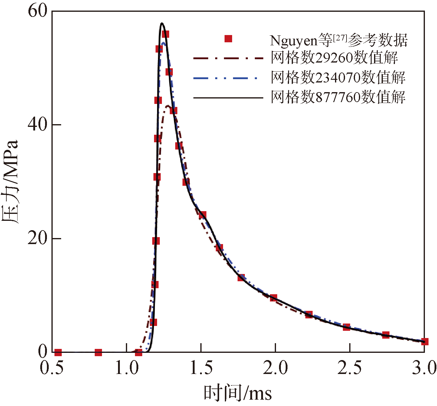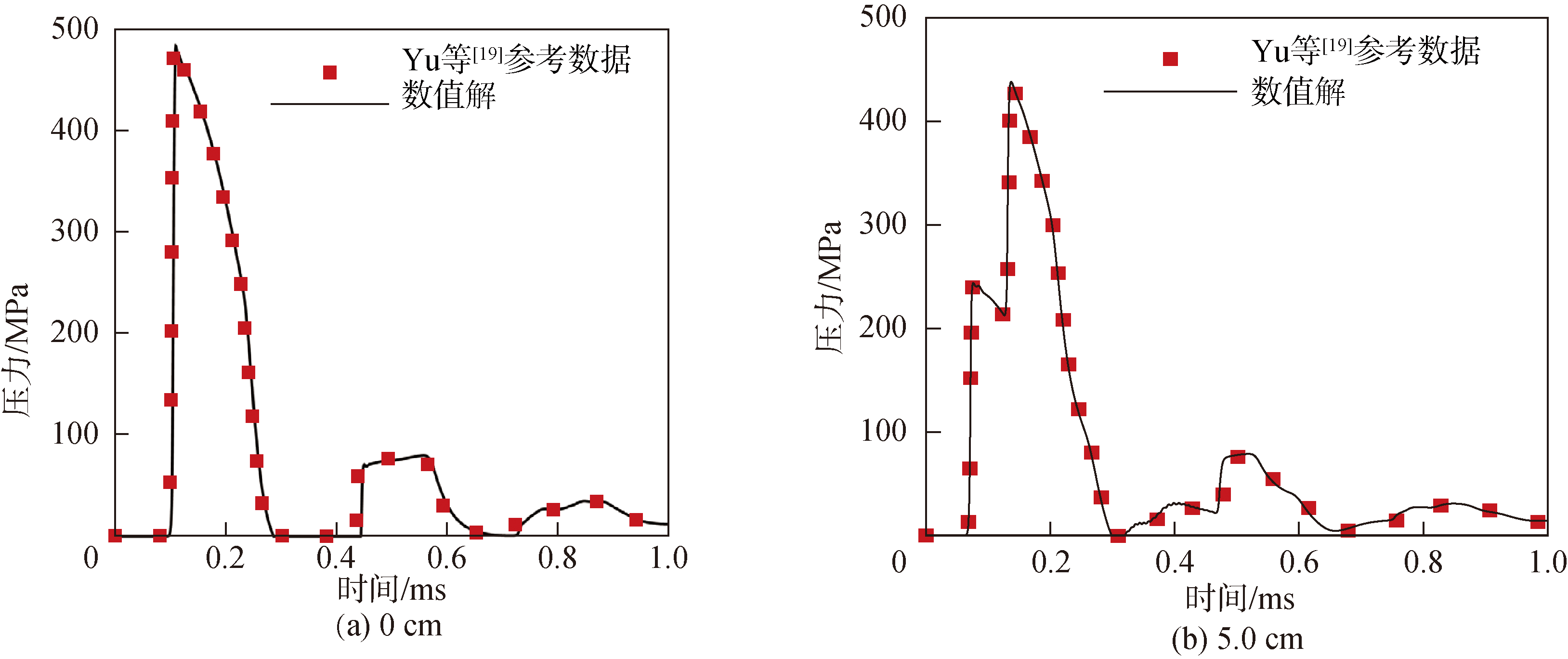 | 介质 | α1 | ρ1/ (kg·m-3) | ρ2/ (kg·m-3) | u/ (m·s-1) | pm/ MPa |