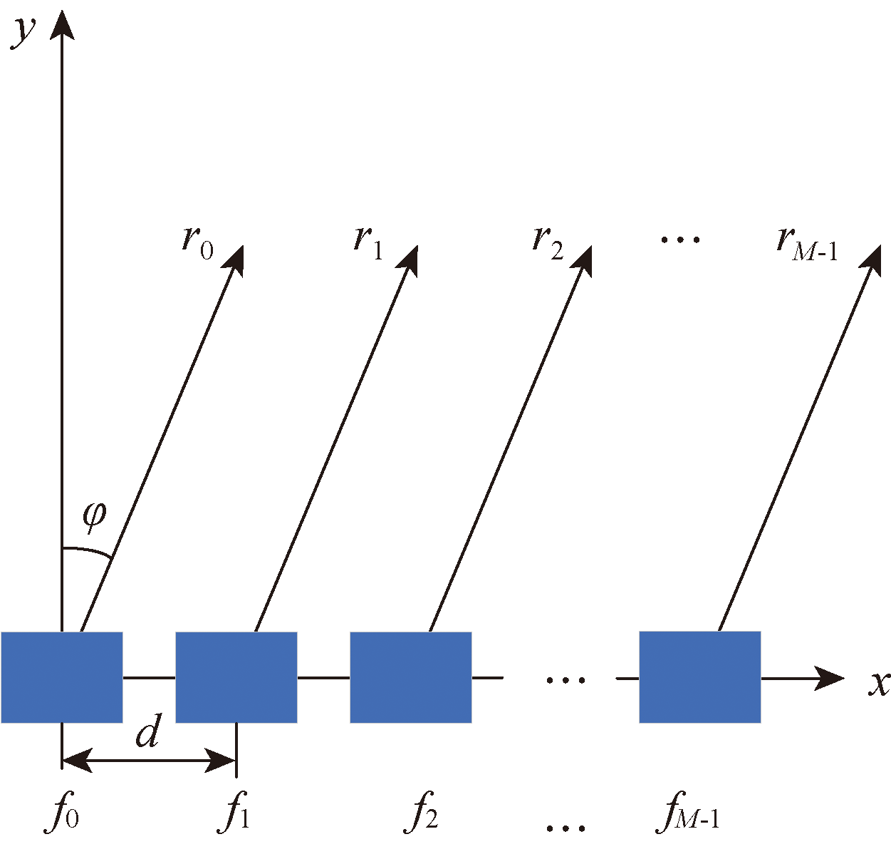 | 本文方法 各阵元频偏/MHz | 0,45.7,46.1,46.3,47.2,47.5,47.7,47.8,48.0,48.2 |