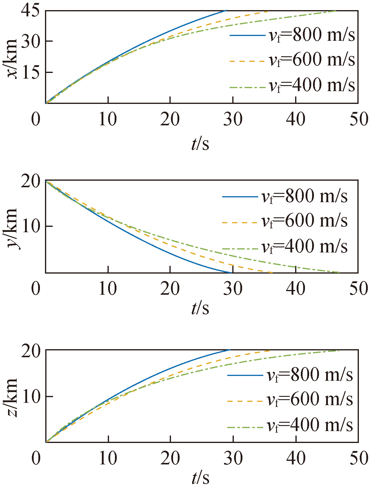 | 飞行器初始位置y/km | 20 | 2 |
