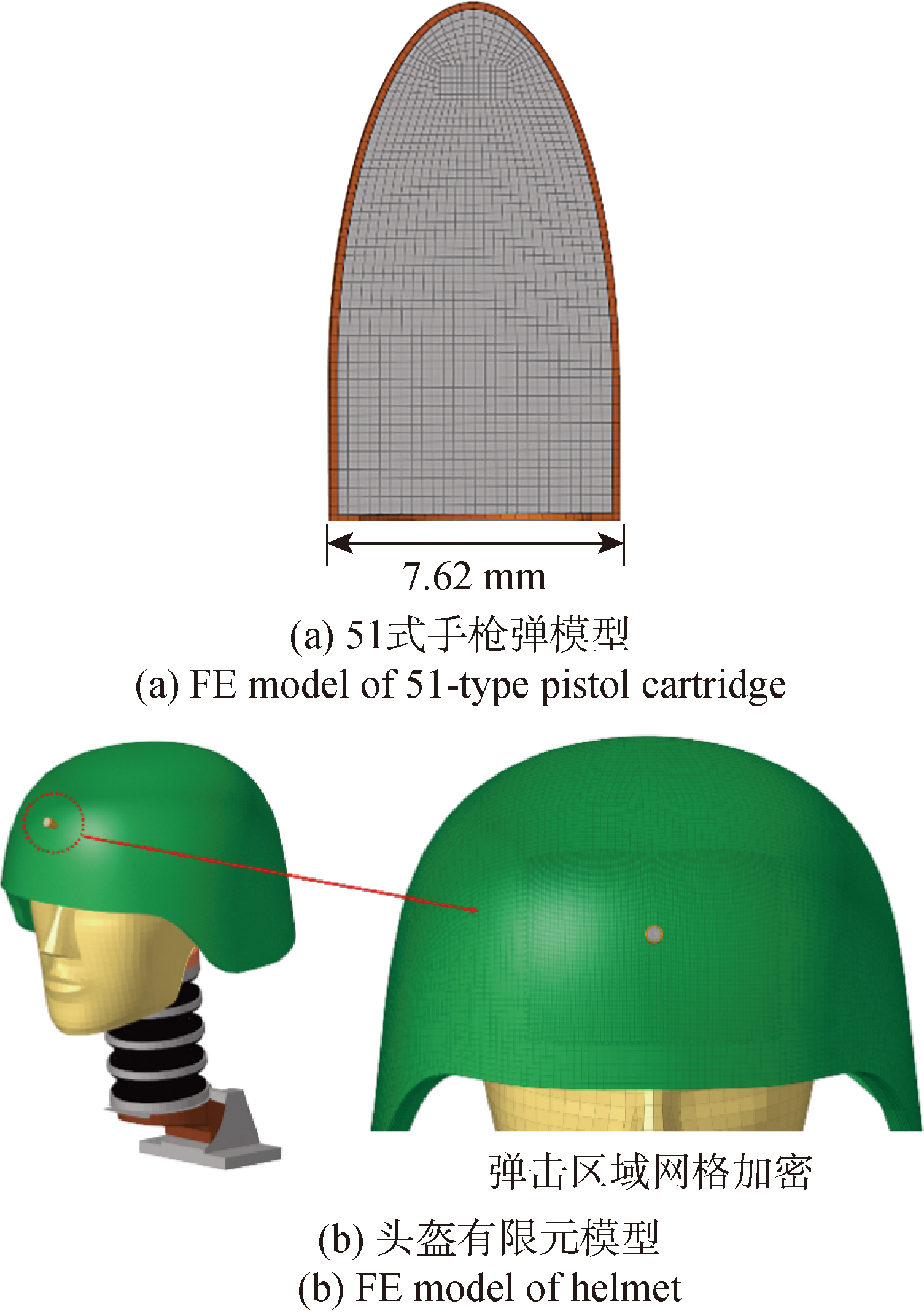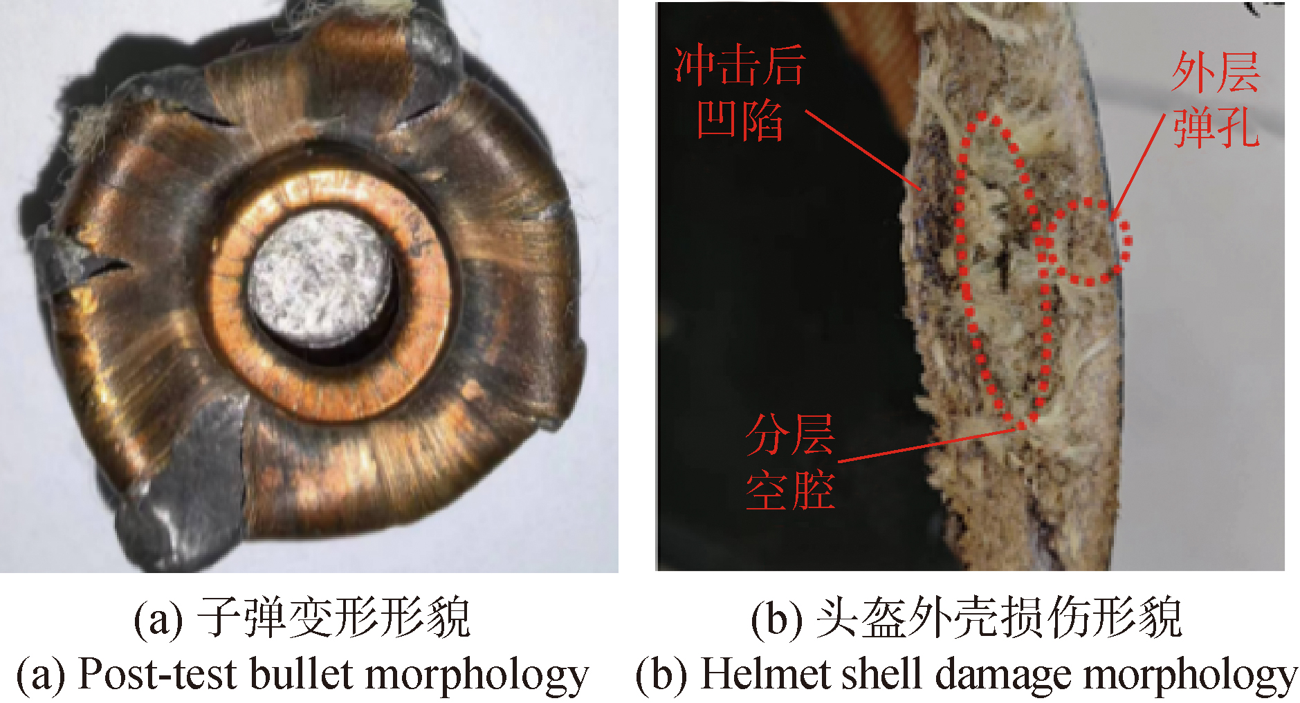 Ballistic helmets are critical protective equipment designed to mitigate craniocerebral injuries caused by ballistic impacts and blast shocks.The cushioning system within the helmet plays a vital role in attenuating the damage effects from such impacts.To enhance the overall protective performance of headgear,a novel cushioning material—EVA/SSG composite foam—was developed by incorporating Shear Stiffening Gel (SSG) into ethylene-vinyl acetate (EVA) foam.Using a ballistic impact testing platform and a synthetic head model,comparative ballistic tests were conducted on helmets equipped with conventional EVA pads and those with the EVA/SSG pads.The temporal variations in impact force on the headform surface and the acceleration at the centroid of the head model during impact were investigated.Additionally,finite element simulations of the ballistic impact were performed.Both experimental and numerical results demonstrate that,under ballistic impact conditions,the helmet with EVA/SSG foam liners reduces the peak pressure on the headform surface and the peak acceleration at the centroid by more than 20%,thereby significantly lowering the probability of head injury.